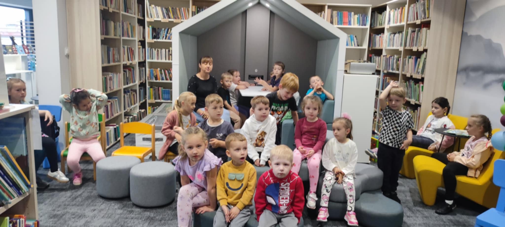 W dniu 03.06.2025r. odwiedziły nas dzieci z Oddziału Przedszkolnego w Lipinach – grupa Krasnoludki, wraz z Paniami. Bibliotekarki opowiedziały małym gościom o fascynującym świecie książek. Nie zabrakło zabaw i zagadek, które rozbudziły ciekawość najmłodszych. Spotkanie było też okazją do wspólnego czytania oraz oglądania książek z działu dziecięcego. Na zakończenie wizyty, dzieci z pomocą Pań, wykonały piękne mini książeczki. Dziękujemy za wspólnie spędzony czas, pełen radosnych, dziecięcych uśmiechów. Mamy nadzieję, że nasza biblioteka stanie się dla nich miejscem, do którego będą często wracać.